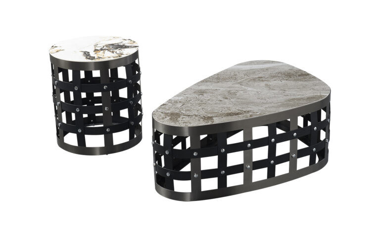 সিরামিক মার্বেল গ্রিডলাইন কফি টেবিল সেট সমসাময়িক স্টাইল এবং বিলাসিতা সহ |