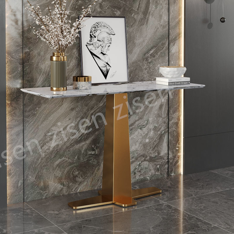 1.সিরামিক মার্বেল টেবিলটপঃ কনসোল টেবিলে একটি উচ্চমানের সিরামিক মার্বেল টেবিলটপ রয়েছে যা বিলাসিতা এবং পরিশীলনের একটি স্পর্শ যুক্ত করে। সিরামিক মার্বেলটির একটি মসৃণ এবং পোলিশ পৃষ্ঠ রয়েছে,প্রতিটি টুকরোকে অনন্য করে তোলে এমন প্রাকৃতিক রঙ এবং রঙের বৈচিত্র্য প্রদর্শন করেসিরামিকের স্থায়িত্ব নিশ্চিত করে যে টেবিলটপটি তার সৌন্দর্য বজায় রেখে প্রতিদিনের ব্যবহার সহ্য করবে।